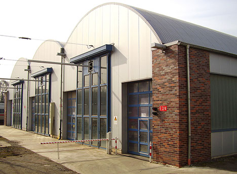 Umbau und Sanierung denkmalgeschützter Richthallen in Krefeld-Oppum, (2003-2005) inkl. Büroanlagen. Bausumme 8,5 Mio. €. Bauzeit 36 Monate. Bauen im Bestand. Maßtolleranz +/-0,5 mm im Betonbau für Messgleis (160 m).