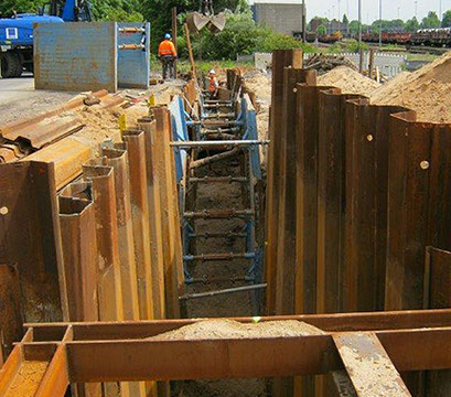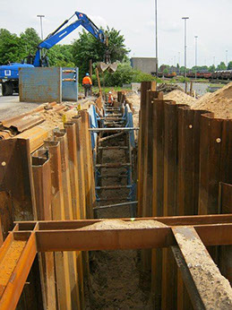 Erstellung eines Kabelgrabens in Duisburg (2012). 110 kV Elektroversorgung.