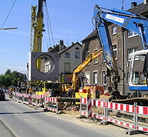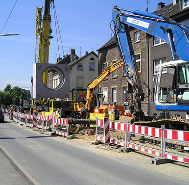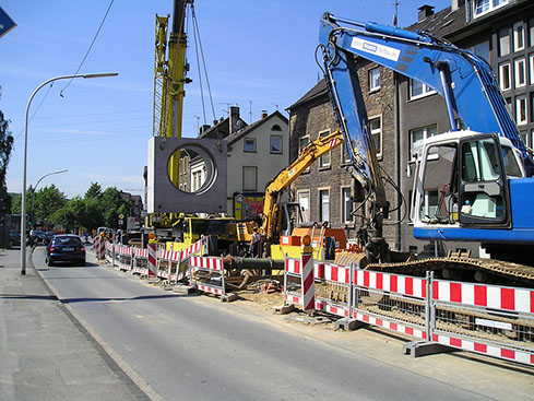 Kanal- und Straßenbau Sprockhöveler/Herbeder Straße, Witten. Auftraggeber: ESW – Entwässerung Stadt Witte. Auftragsvolumen 4,45 Mio. €. Bauzeit 28 Monate.